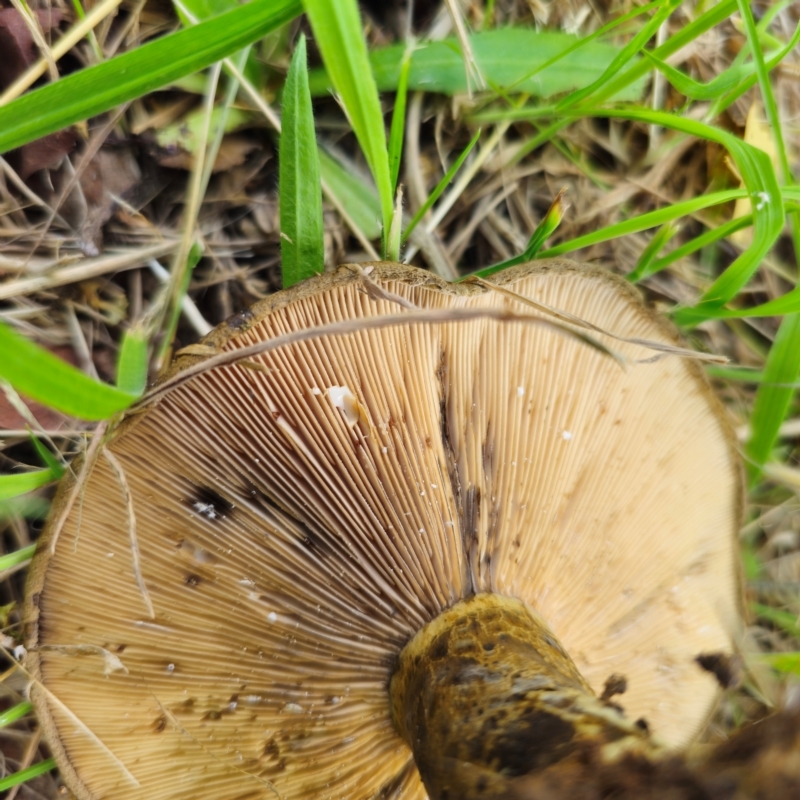 Gills dark chocolate brown: Agaricus, Agrocybe.