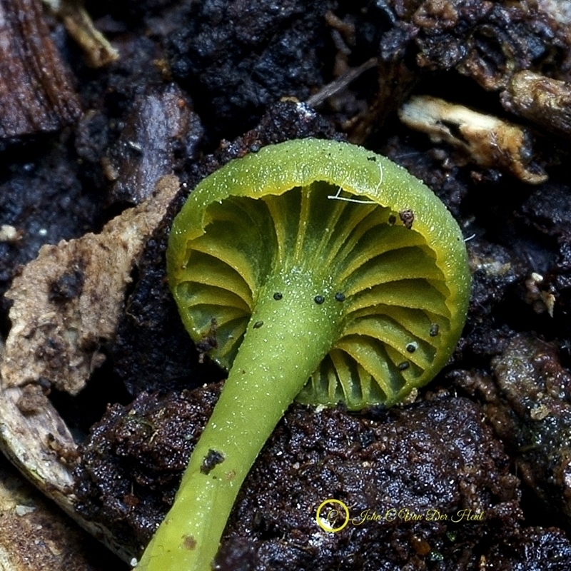 On twig/leaf litter: Marasmius, Mycena.