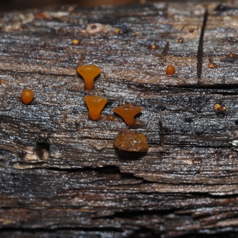(2) A cyanobacterium, such as Nostoc (https://canberra.naturemapr.org/species/9060),  which is jelly-like and has a khaki to greenish colour when hydrated.