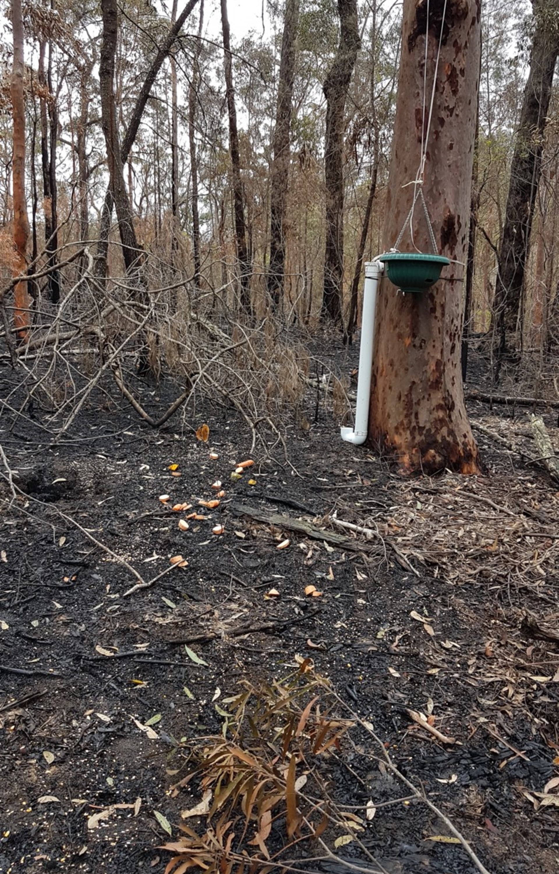 Good arvo @SamF , thank you for your sighting. Which species of plant(s) do you request to have identified? The foreground larger tree with the apparent watering and feeding station equipment on it, identifies clearly enough from the bark in this region to *Eucalyptus maculata* – spotted gum . All the best, Jason.