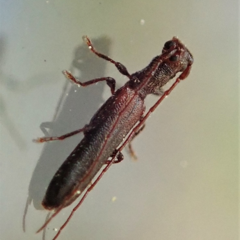 Small, narrow-bodied beetles. The eyes are each divided into separate dorsal and ventral parts, an unusual feature shared with only three other genera of Australian Longhorn beetles.