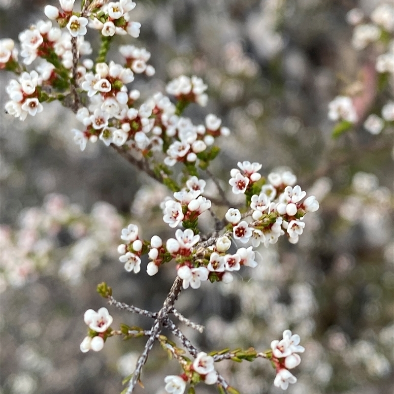 Micromyrtus sessilis is a species of flowering plant in the myrtle family, Myrtaceae and is endemic to eastern Australia. It is a dense, spreading shrub with small, more or less linear leaves and flowers that are sometimes single in the upper leaf axils or in dense clusters along the branches. It is similar to M. ciliata but has a more northerly distribution.
