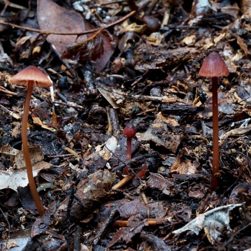 This species occurs in small groups in forest litter on the forest floor or amongst grass in open eucalypt woodland.