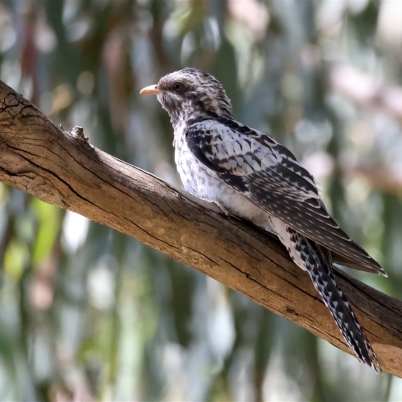 female with relatively plain throat and smaller nuchal crest