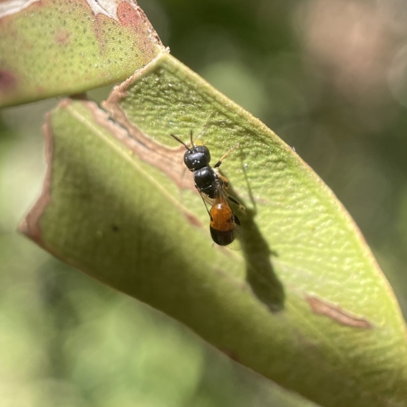 Male in flight, female on flower