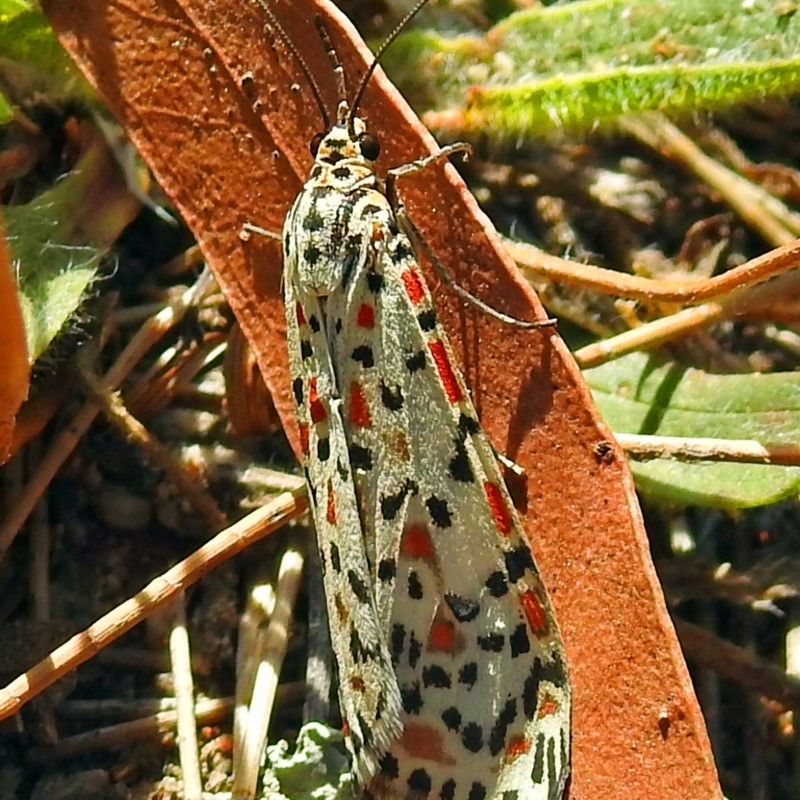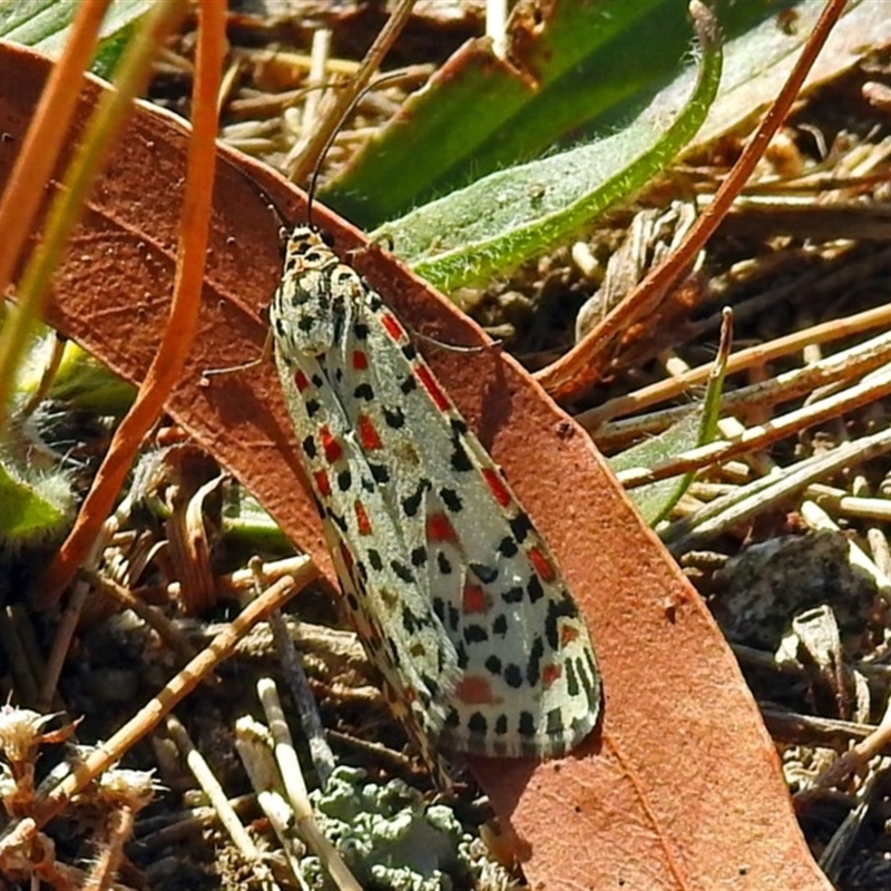 Shows 5 red spots on the trailing forewing edge clearly